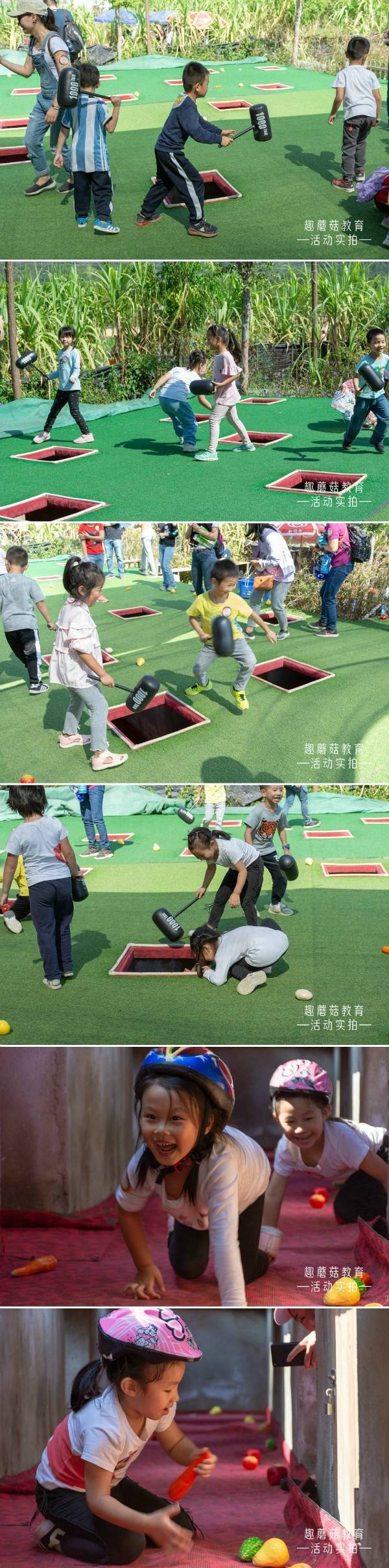 将机动游戏搬到田野里,与大自然完美融合。就算没有电子游戏,大自然也能让你无比快乐。撒欢过后有所收获,每个人都不能离开团队而独立存在,打地鼠将教会你团队合作的重要性。地洞里伸出手来试探的地鼠,还有地上手握锤子的农民,一不小心被偷或被打,都会让这一片土地充满了欢乐!