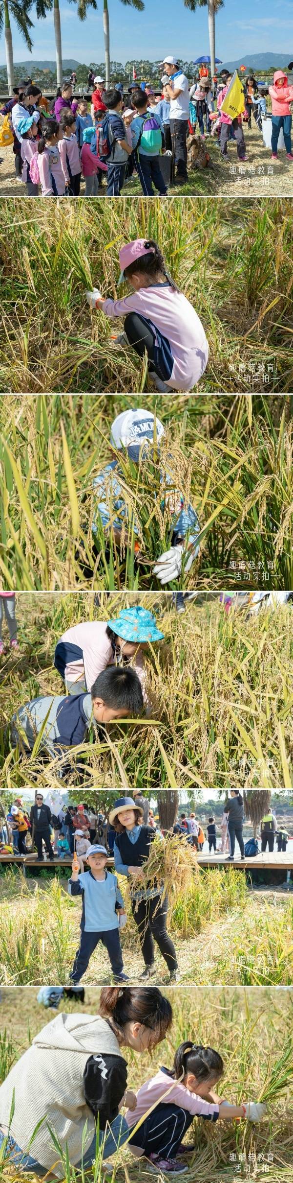 秋天正是收获的季节,田野金黄色的稻谷穗上已挂满了饱满的米粒。在亲子导师的带领下,孩子们戴着手套,拿着镰刀,到田间真实体验感受收获的喜悦,感受每颗米粒的来之不易。