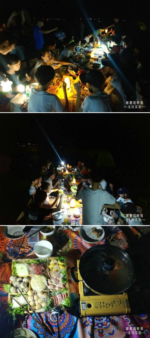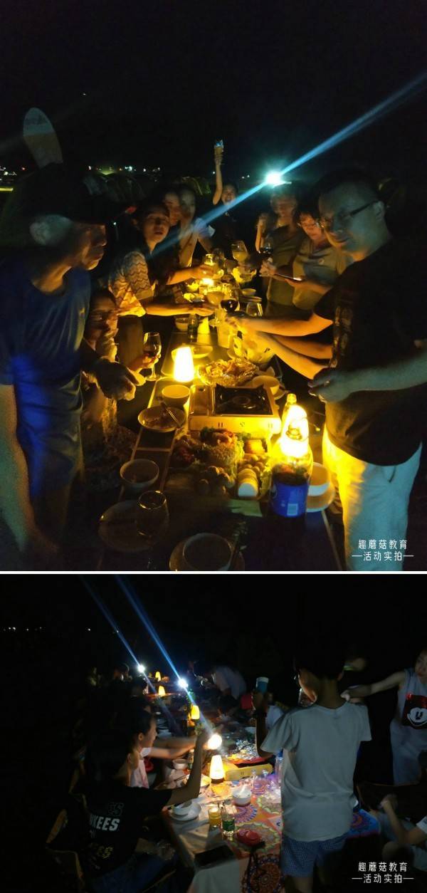 晚上,吃饱喝足后,音乐响起,属于家长和同学们的欢乐时刻,大家一围坐在一起,唱歌、玩游戏、吉他弹奏......