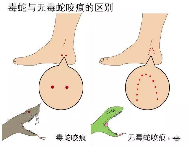 被无毒的蛇咬伤后,伤口是会出现四行或两行锯齿状浅而细小牙痕。