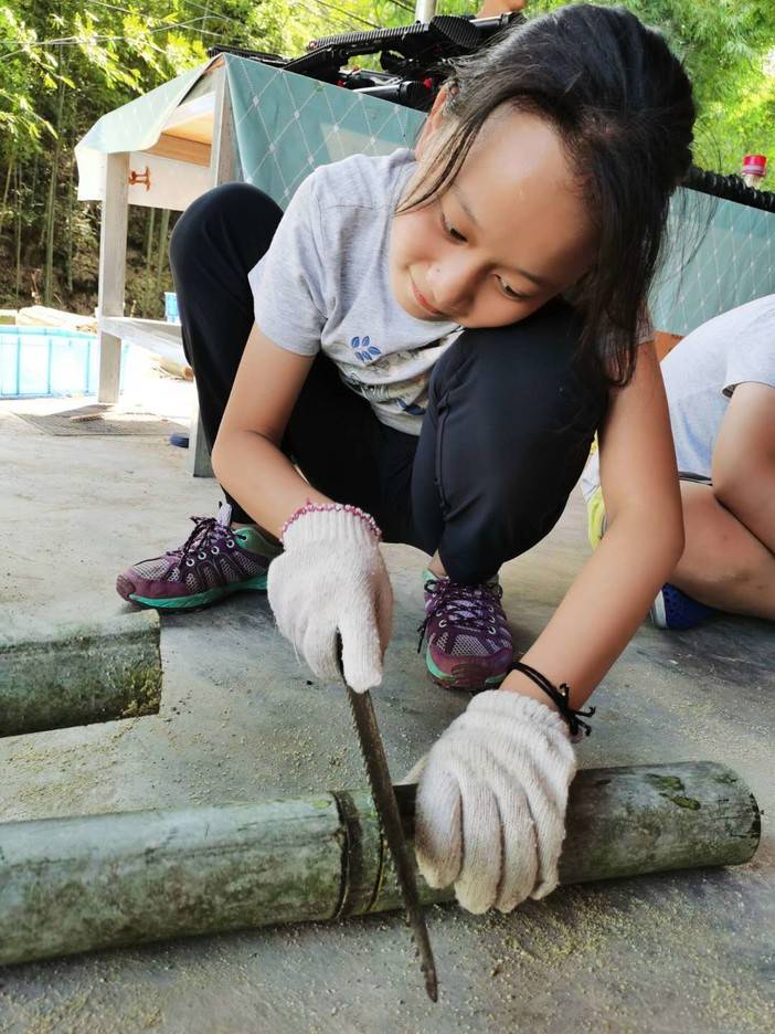 体验竹文化,原生态材料DIY,砍竹,锯竹,打磨,期待学员们的成果。