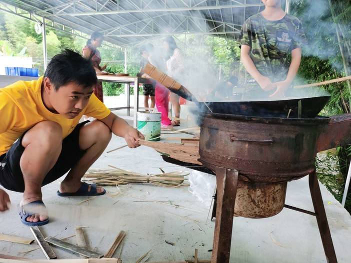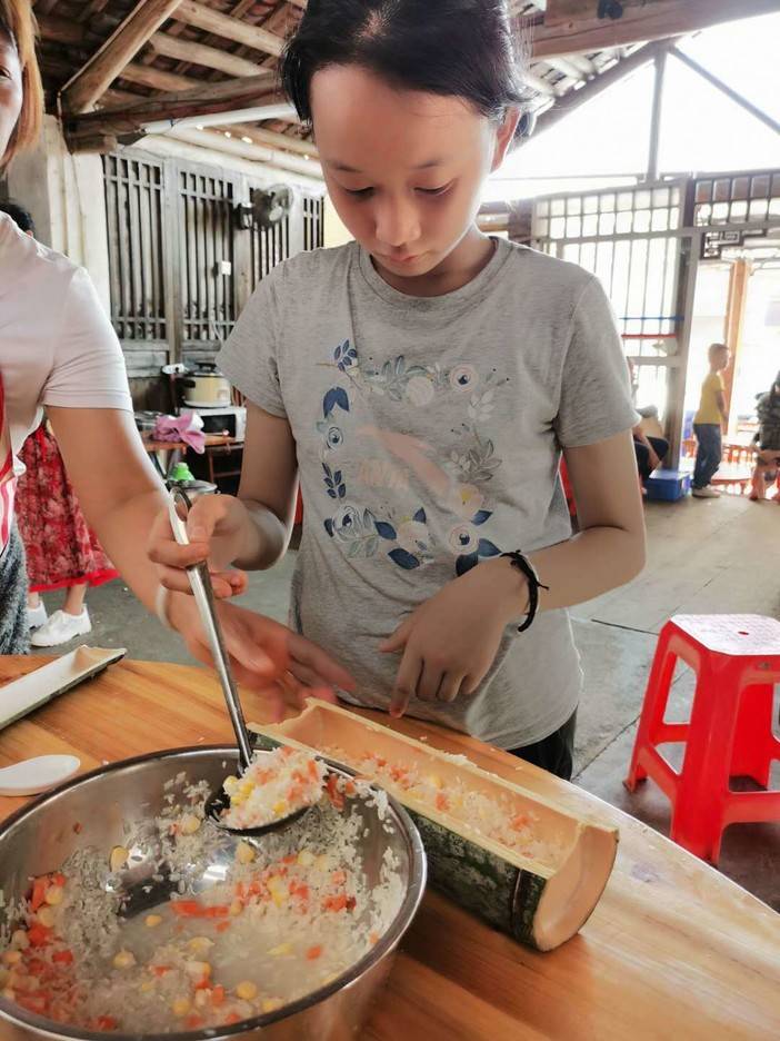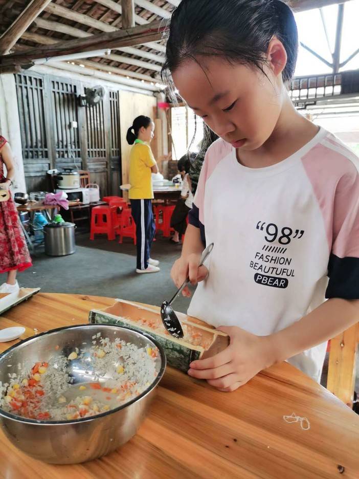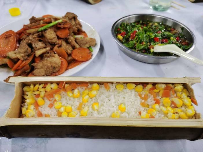 用着我们自己做好的竹碗筷,吃饭都更加香了
