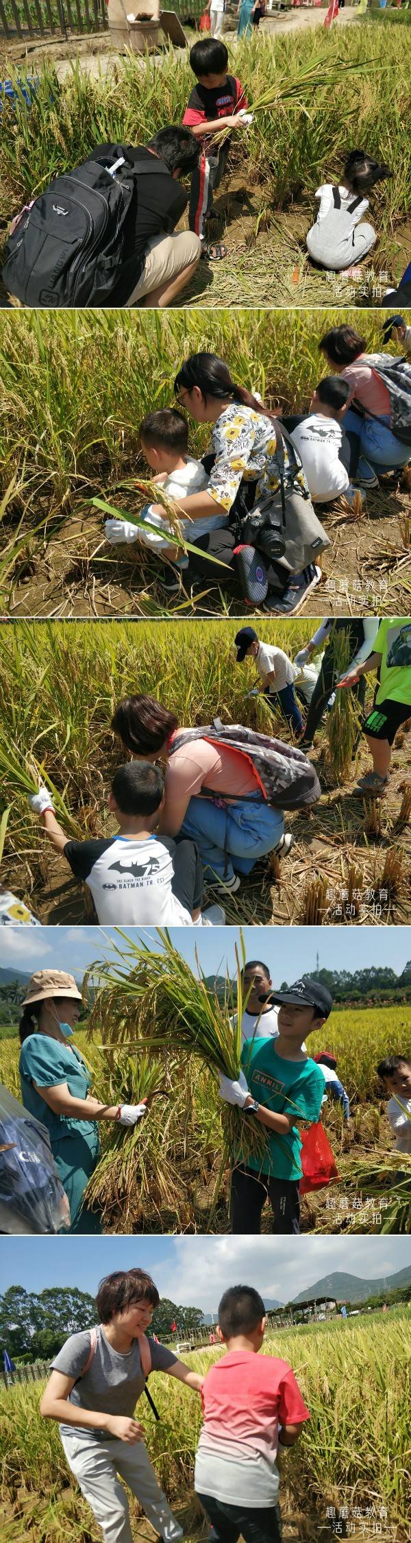 在亲子导师的指导,和爸爸妈妈的带领下,孩子们到田里真实体验割稻谷,再用打谷机将稻谷一粒粒分离出来。了解大米的生产,真实体验粮食的来之不易。