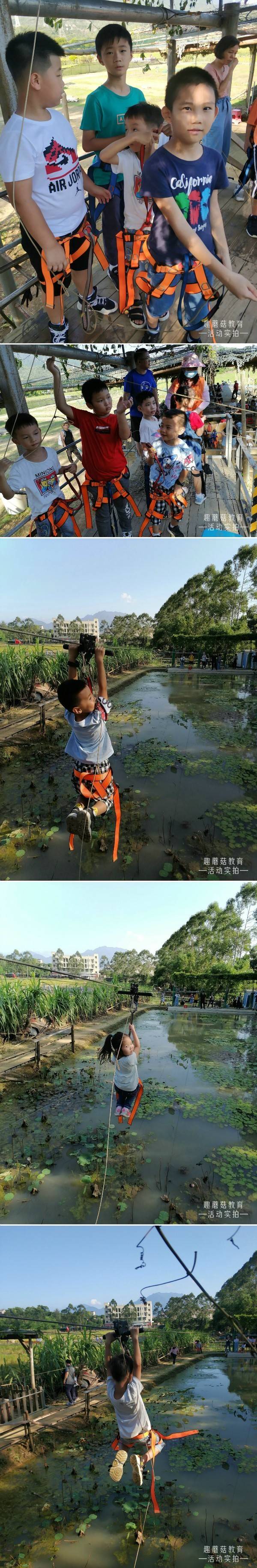 水上溜索,锻炼孩子意志和勇气,看似简单的活动,吓退不少孩子。不过,没关系,导师告诉孩子们方法后,大家穿上安全带,一溜烟从湖面溜过去,孩子们玩过一次后,还想玩第二次。
