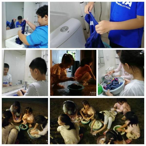 洗澡后,生活老师指导孩子们洗衣服,锻炼孩子们动手能力。