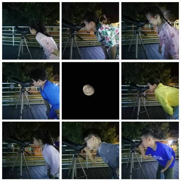 活动导师带领同学们观察月球表面,农历十九,还是可以清晰观察月球表面的环形山和陨石坑。