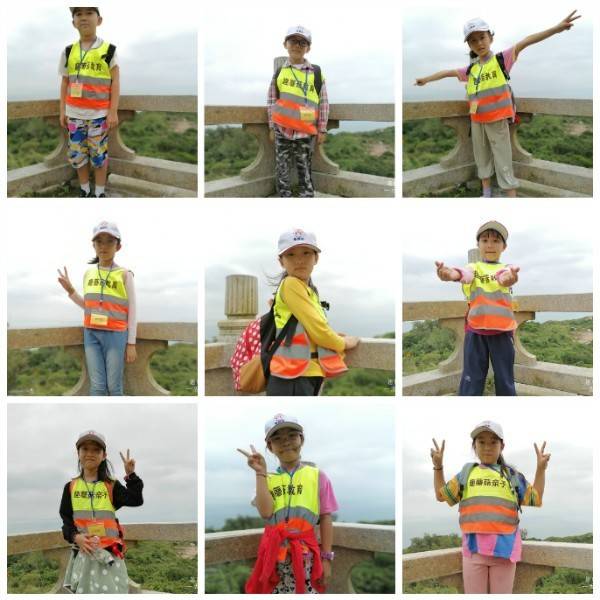大家相互鼓励,所有队员成功登顶伶仃峰,给孩子们点赞。