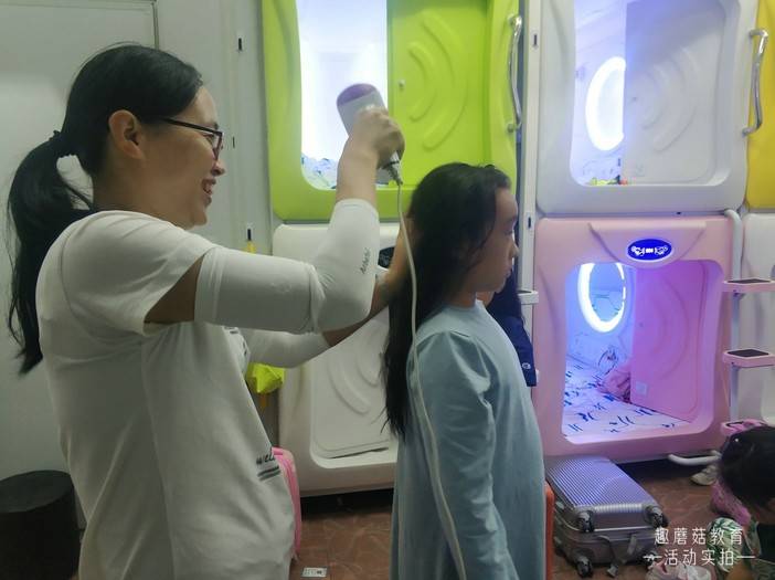 入住充满科技感的太空舱,五颜六色的灯光,孩子们既兴奋又好奇。