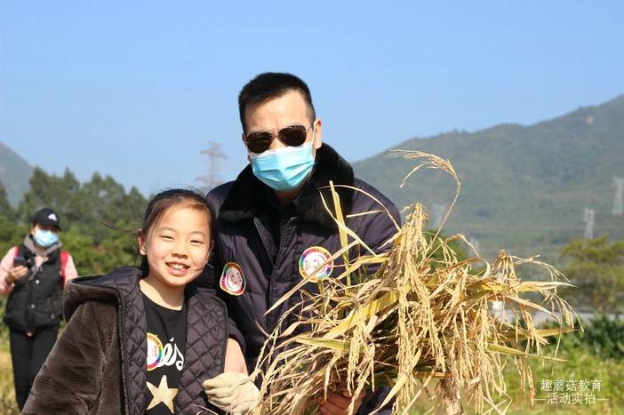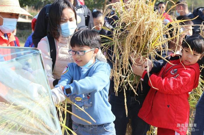 在亲子导师的指导,和爸爸妈妈的带领下,孩子们到田里真实体验割稻谷,将割好的稻谷,再用打谷机将稻谷一粒粒分离出来。了解大米的生产,真实体验粮食的来之不易。