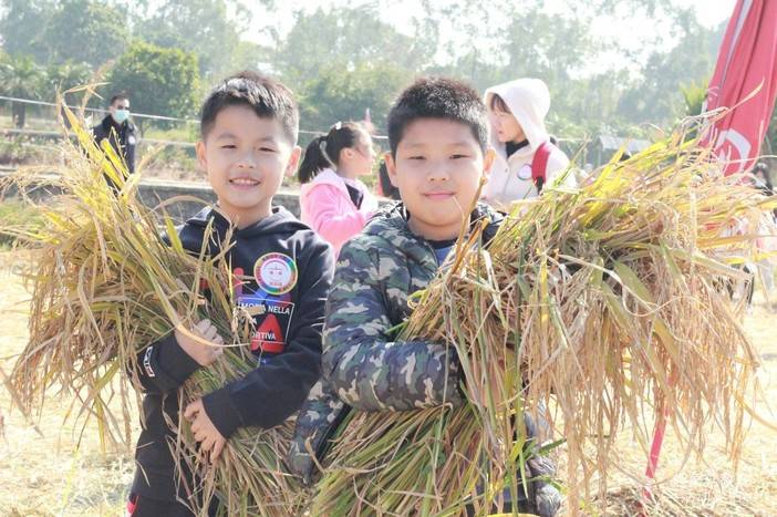 秋天正是收获的季节,田野金黄色的稻谷穗上已挂满了饱满的米粒。孩子们真实体验感受收获的喜悦,拿起镰刀,穿着手套,下田割稻谷,感受每颗米粒的来之不易。