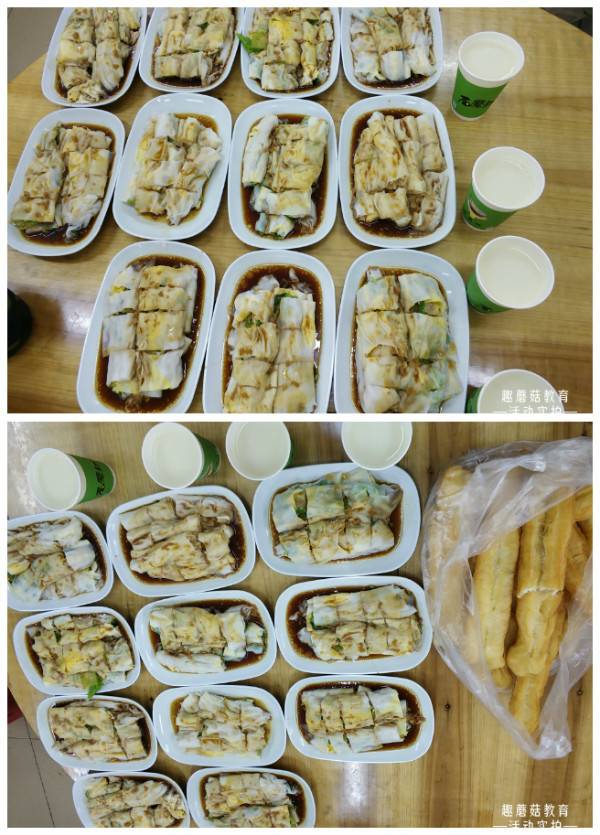 早餐:肠粉、豆浆、油条、小笼包。