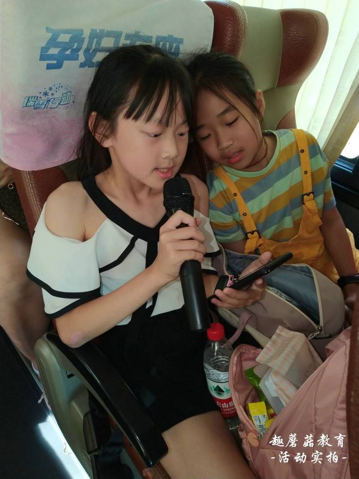 5月15日早上,趣蘑菇工作人员和大巴车,到达指定地点,接上孩子和家长们,在亲子导师的带领下,大家在车上一起欢歌笑语前往东莞营地,开始今天的欢乐亲子活动。