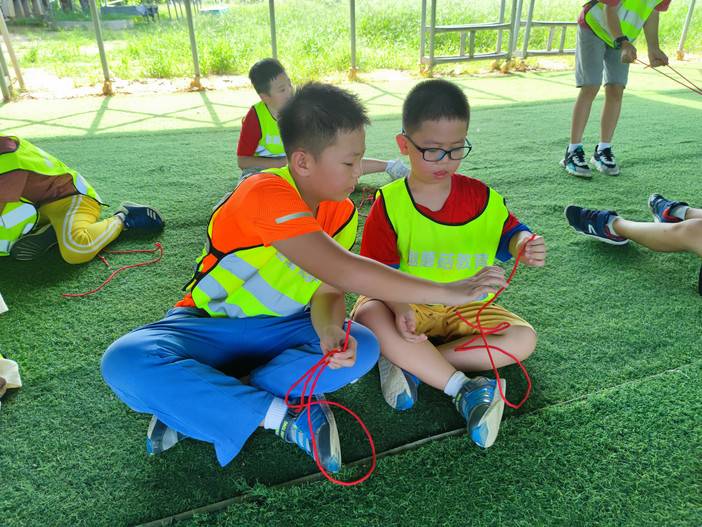 童军绳结:锻炼孩子们动手能力,在户外,绳子对我们有着很大作用,学习常用绳结,增强队员们野外求生技能。绳结相对比较难,但同学们之前会相互指导,很棒!
