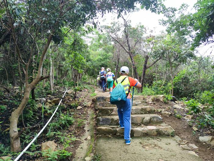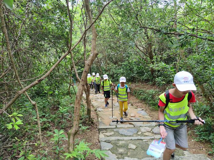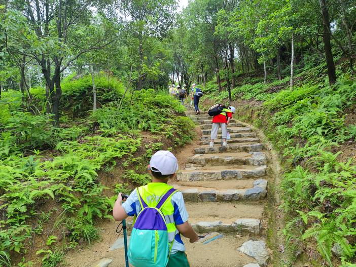 俗话说“上山容易下山难”,也确实是这样,七娘山相对来说比较陡,下山需要更加小心,导师会教孩子们如何利用登山杖来降低难度和正确的脚步来辅助下山。