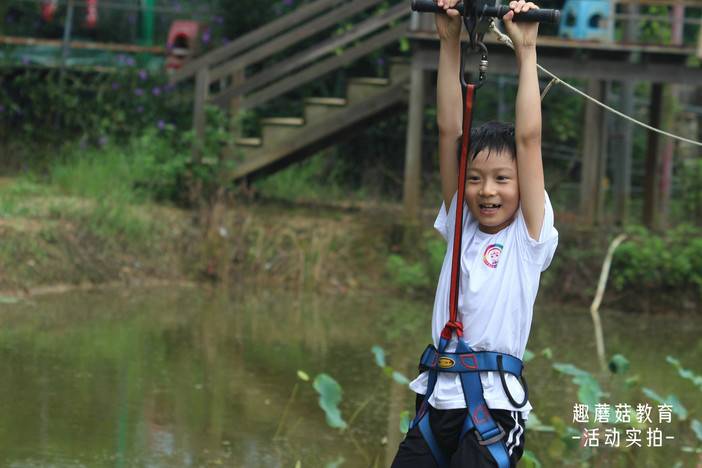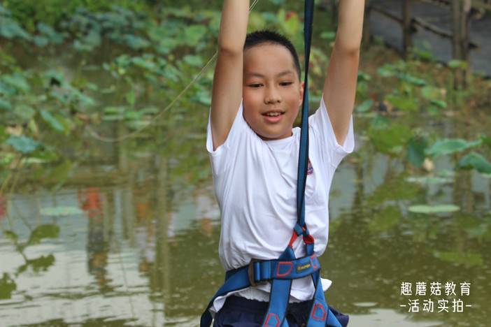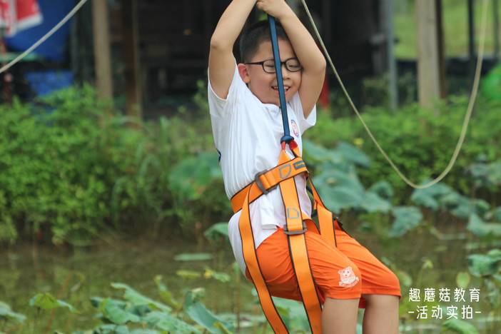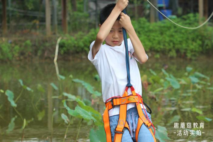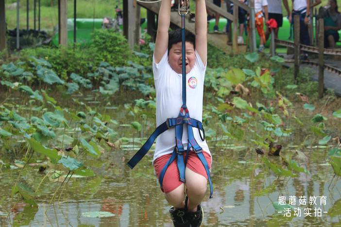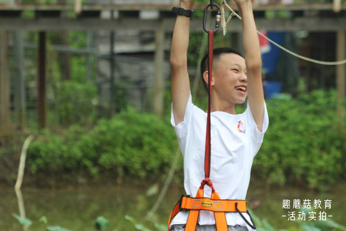 水上溜索,看似简单,玩起来可不简单呢。队员们穿上安全绳,克服内心恐惧,站到起点,溜过去。玩过一次后还想玩