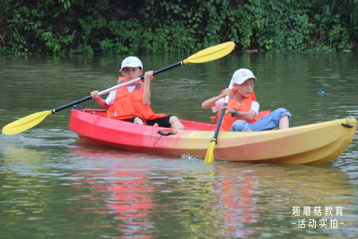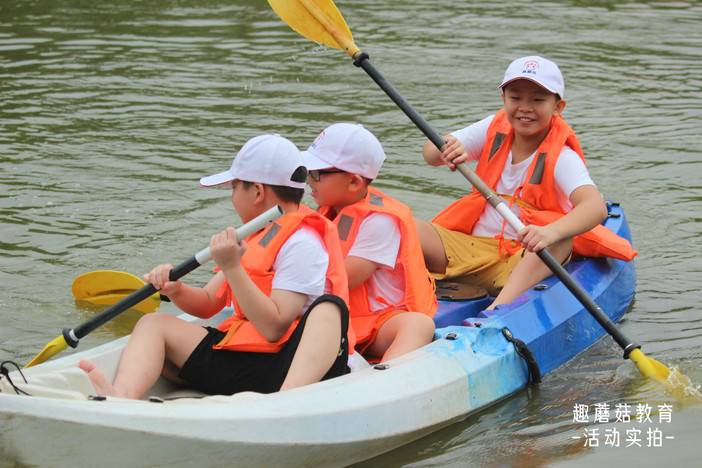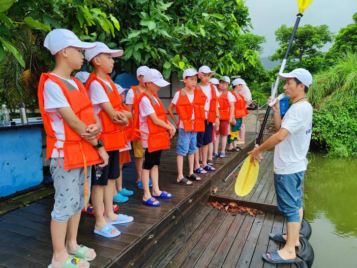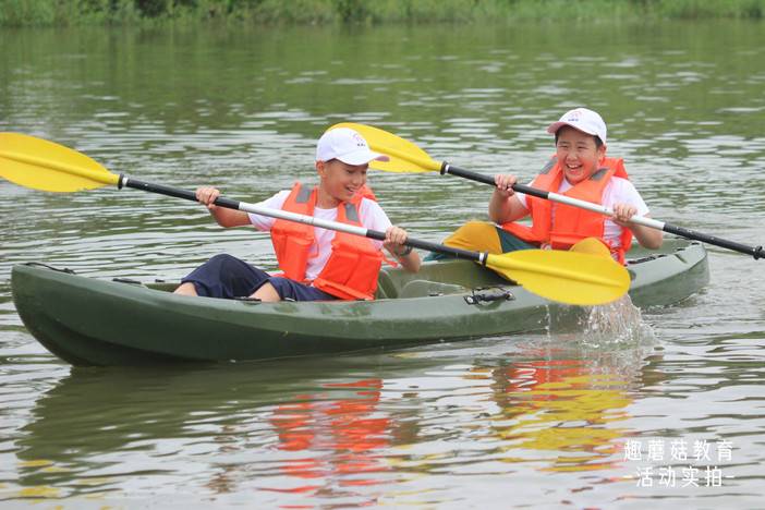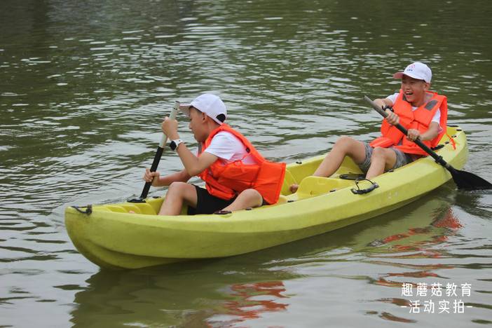 在静水湖中进行,水上皮划艇,掌握技能,非常安全。一轮项目玩下来,别提小朋友们有多开心啦,在玩中也学到了很多技能,也提高了孩子的团队协作能力。