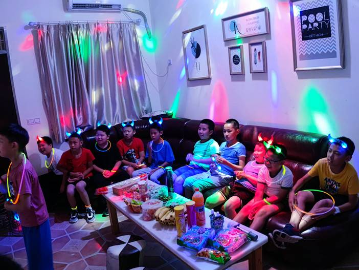为了庆祝孩子们完成相关任务,我们晚上一起嗨皮一下,举办一个荧光晚会,大家一起放松放松!