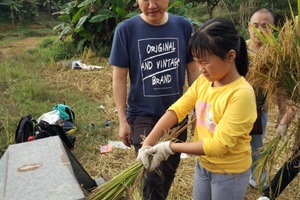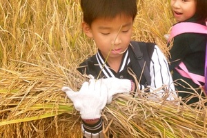 “谁知盘中餐,粒粒皆辛苦”,这句古诗道出了农民耕种的辛苦,亲子共同收割水稻,亲身体验农民耕种的辛苦和收获的喜悦。(中秋部分稻谷已成熟)