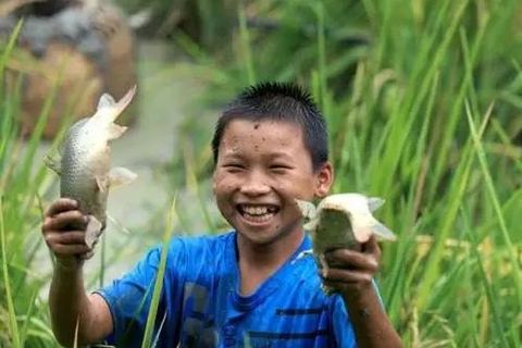到达堂安侗寨之后,我们寻一块农田,挽起裤脚,一起与孩子下田里【抓稻田鱼】,抓到的鱼去农家加工成美味的午餐,一起分享收获的喜悦。