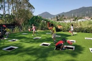 11:30-12:00 真人打地鼠:按照人数随机分成两组,一组扮演地鼠,头戴头盔,钻进地道,探头出来偷蔬菜,另一组扮演农民,手持气锤,保护蔬菜,孩子们可以在欢乐的田地里玩得不亦乐乎;