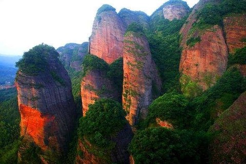 09:00 前往主峰景区,游览【长老峰】(时间约2小时)登上【观日亭】俯视丹霞山全景,途中可看到许许多多奇形怪状的山峰如睡美人、茶壶峰、僧帽峰、蜡烛峰、姐妹峰、别传寺、鸳鸯树等。