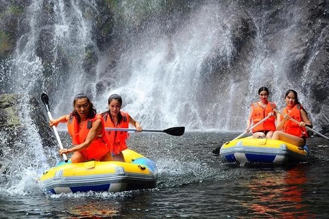 14:30左右A套餐参加2007年国际漂流决赛赛场【古龙峡飞龙全程漂流】(免费升级全程漂)(全程约一个半小时),全长5.2公里,落差达236米,共137处,创下了广东单项漂流长度最长、回旋最多、落差最大三项纪录,被誉为中国漂流的巅峰之作。更被国家体育局水上运动中心指定为国际漂流大赛专用赛道。河道奇石飞舟,在峡谷中穿石绕壁;凌波逐浪,领略博浪飞舟的激越,高歌击桨的豪放;一路急流勇退,高潮迭起。由于该赛道挑战性强、安全体系健全,目前还作为国际极限运动联合会的训练基地,不定期进行专业选手的培训和竞技表演,成为中国自然生态漂流的全新亮点。