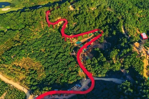 公园总占地面积403万平方米,西起新城公园,东接马拉松山湖绿道的“虹桥”穿山而过,犹如一片绿林,簇拥着一条鲜明的“红飘带”。
