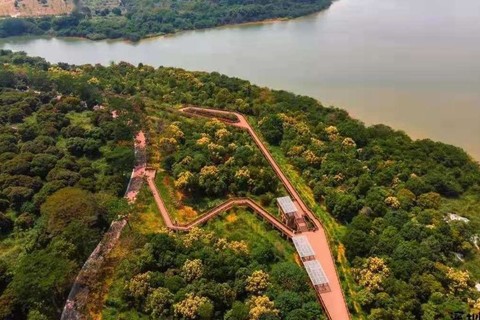 石岩湖绿道是环绕国家一级水源保护地-石岩湖水库而建,它依山傍水、景色怡人,沿途经过羊台山森林郊野公园、石岩湖、石岩河等生态资源,并串联起22个不同景观节点,包含环湖步道、滨水栈道、观云台、拈花台、时雨亭、青草蜓、荷花池等观景点,可以一览湖光山色。