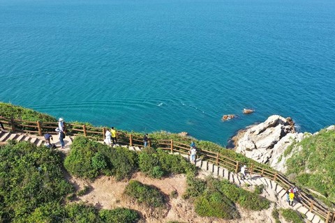 10:30~17:30 跟随领队沿杨梅坑海滨栈道徒步,经过过店沙滩,从鹿雁科考线登山口登山,到达山顶后原路返回到杨梅坑停车场;