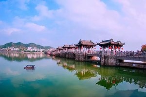 游览潮州八景之一“湘桥春涨”——广济桥景区广济桥:始建于南宋乾道七年,俗称湘子桥。横跨韩江,集梁桥、浮桥、拱桥于一体,全长 518 米,中间浮桥长 97.3 米,由十八只木船连接而成。其是潮汕地区著名文物旅游胜地,中国四大古桥之一,全国重点文物保护单位,国家AAAA 级景区,被桥梁专家茅以升誉为“世界上最早的启闭式桥梁”。