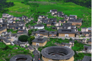 初溪土楼群位于福建省永定区下洋镇初溪村,自明代至现代,历经数百年建成,为徐氏家族聚居地,总面积为14.72公顷。初溪土楼群是永定区内最原始、最具客家人文色彩的土楼,被誉为“中国最美丽的土楼群”。由五座圆楼和数十座方楼(主要有集庆楼、余庆楼、绳庆楼、华庆楼、庚庆楼、锡庆楼、福庆楼、共庆楼、藩庆楼、善庆楼等)组成,主要种类有长方形、正方形、圆形、六角形等。溪土楼群的楼名中间都带有一个“庆”字,以示人丁兴旺、万事如意。初溪土楼群独特的建筑风格和古老的韵味体现出较高的美学和历史价值,显示了中国劳动人民的智慧和创造才能。初溪土楼群建筑规模和建筑艺术营造的文化氛围为世界各地少见,展示了中原遗风和客家民风