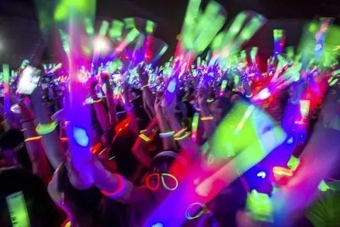 3、荧光大礼包:定制荧光纪念手环1条、荧光头箍灯1个、荧光棒5条