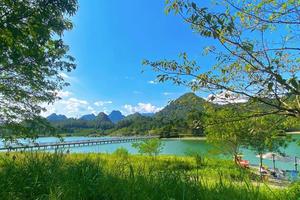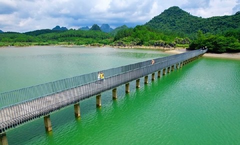 情人桥长200多米,斜跨仙湖