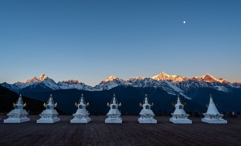 最后,我们来到飞来寺,静待梅里雪山日照金山的壮丽景象。在那一刻,金色的阳光洒在雪山上,熠熠生辉,令人陶醉。