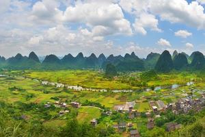 遇龙河是一条清澈见底,环境优美的自然河流,素有“小漓江”之称,是阳朔山水的精华。两岸有过千座山峰,良田百亩。徒步遇龙河边,两岸一派田园风光,景色应接不暇,山青水碧,竹翠桥奇,赏心悦目。没有现代化建筑,没有人工雕琢的痕迹,没有都市喧嚣,一切都是那么自然,朴实,悠闲。
