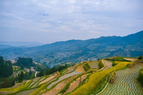 早餐后乘车前往堂安梯田,我们带领着大家沿着梯田小道拾级而下,体验当地上学路,途中穿越厦格洞寨,路上了解梯田的建造、灌溉系统以及黔东独有的“稻鱼鸭”共生系统。