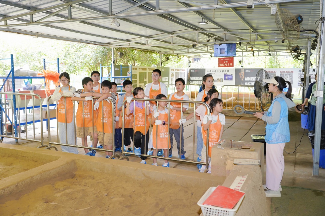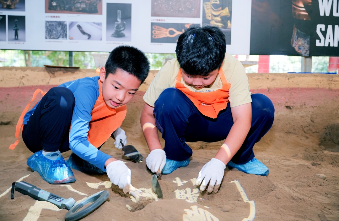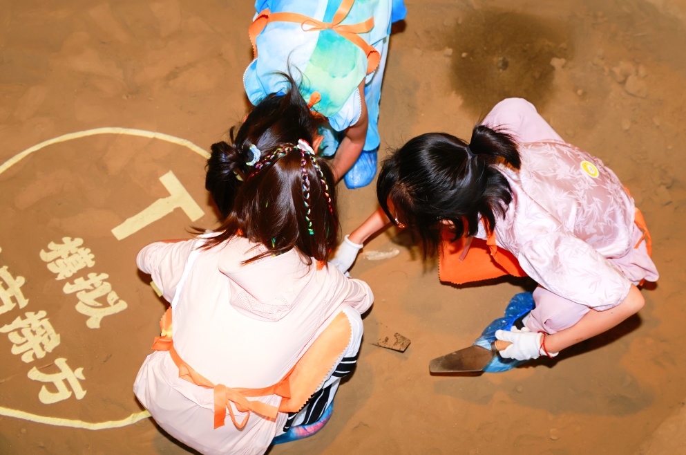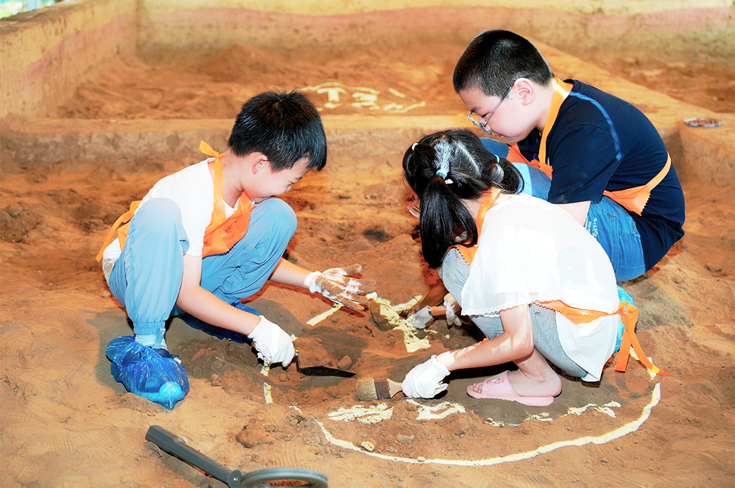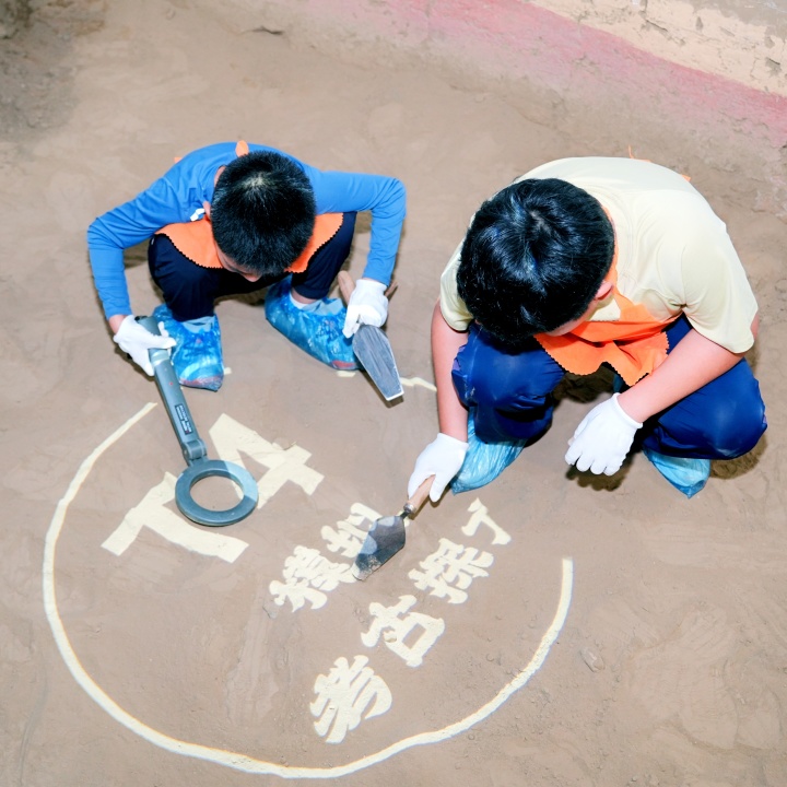 在真实复原的考古坑中,亲手操作手铲、刷子等专业工具,经历从勘探定位到文物提取的全流程,体验考古发掘