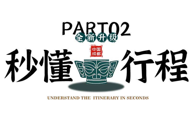 注:因为三星堆博物馆特殊性,项目时间安排可能会由于基地变动或不可抗力因素导致实际行程顺序的调换,敬请谅解