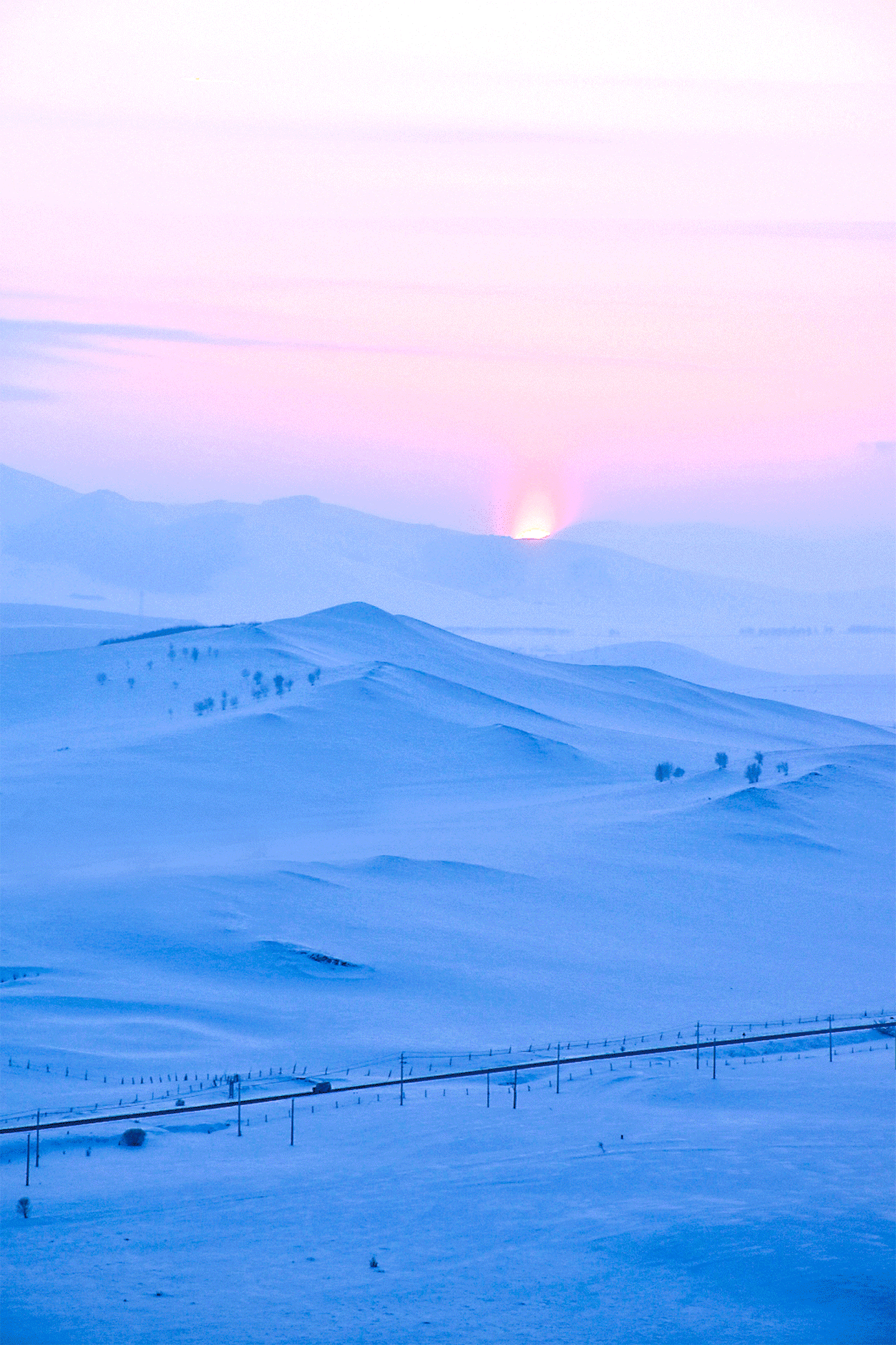 乌兰布统,有着可以说是国内独一份的草原雪景,一个地方可以同时get阿勒泰的森林晨雾+呼伦贝尔的苍茫雪原+东北林海的雾凇。