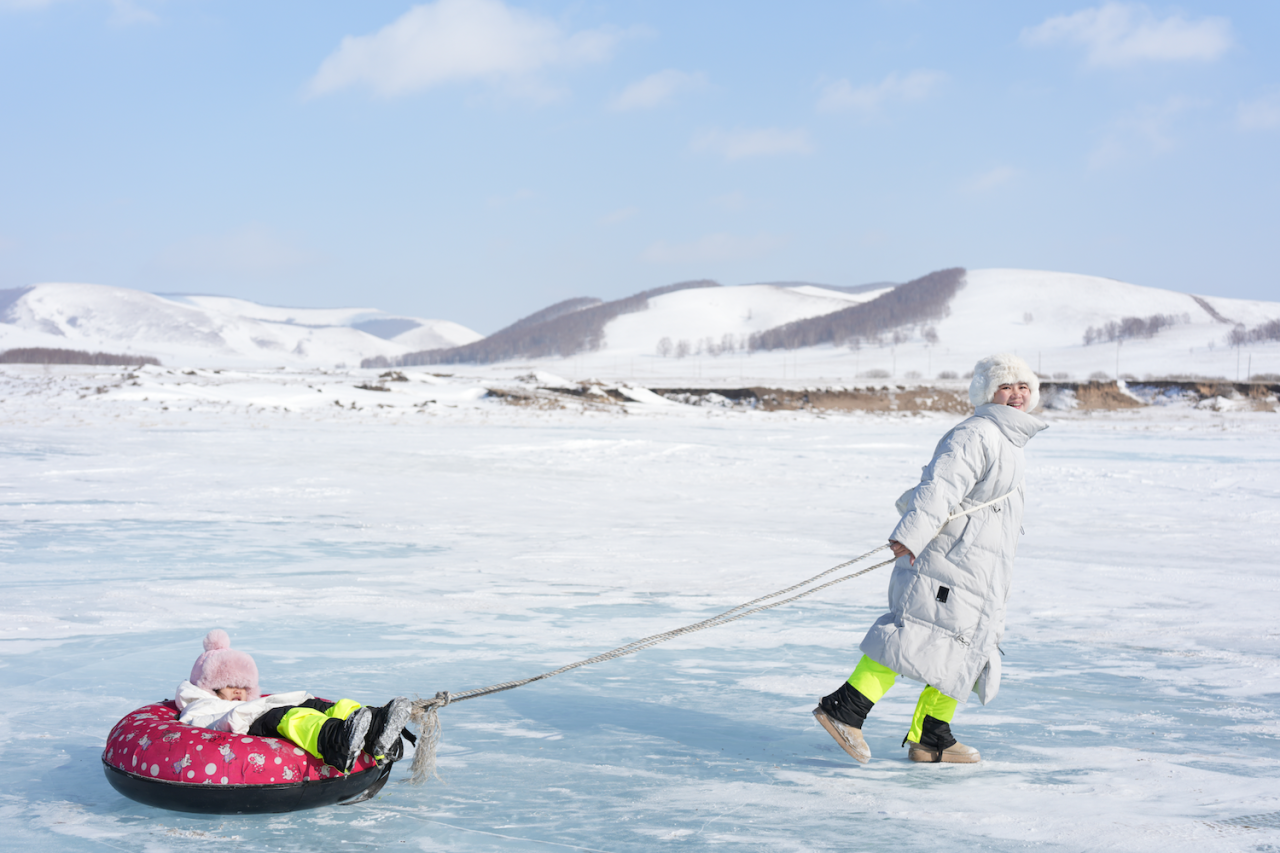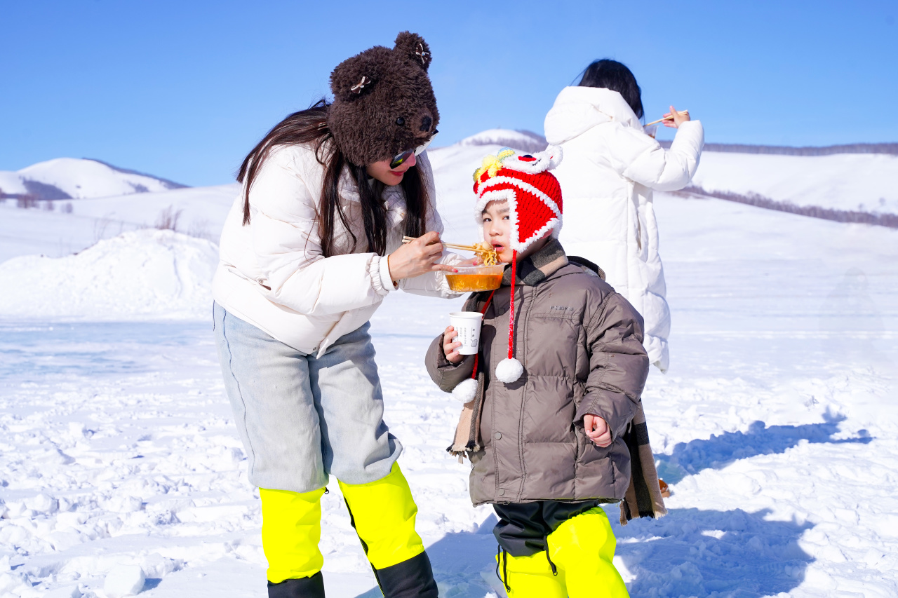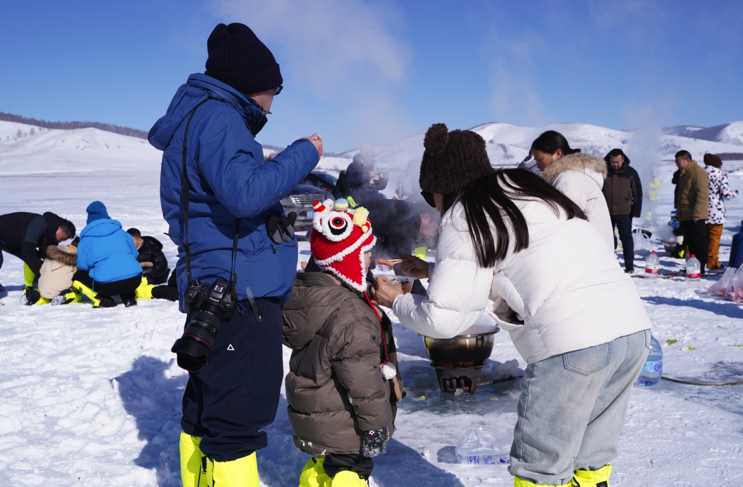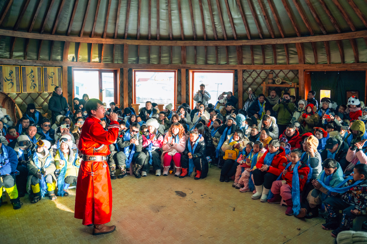 雪地爬犁、高山滑雪(不限次数)、驰骋雪原、拔河打雪仗、参加祭火大典、换上色彩鲜丽的冬季蒙古袍蒙古帽体验蒙古舞蹈……N+玩法让这里成为“雪原迪士尼”。