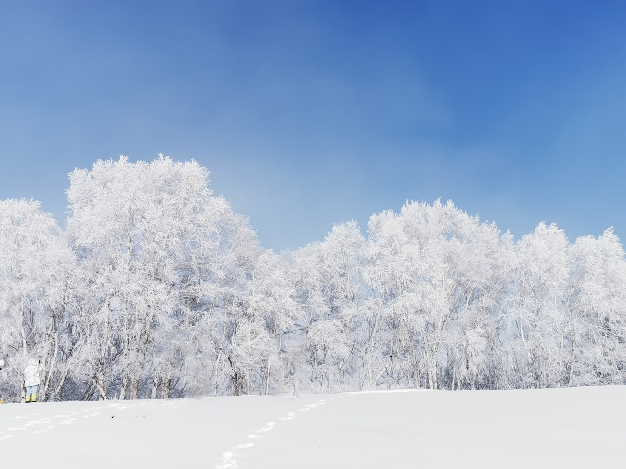 无边的雪国里,晨雾逐渐飘散在日光里,雾凇 “千树万树梨花开”。