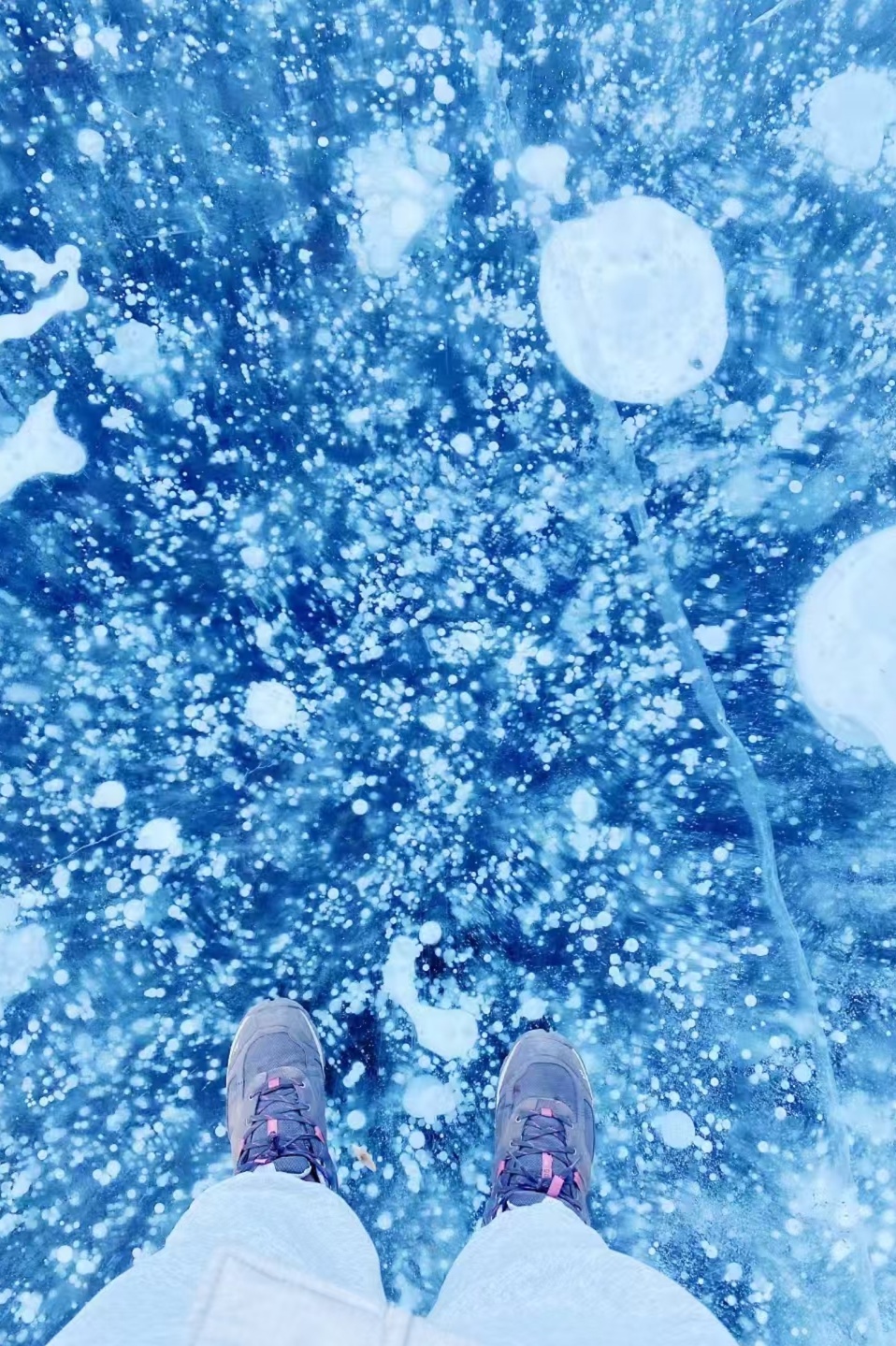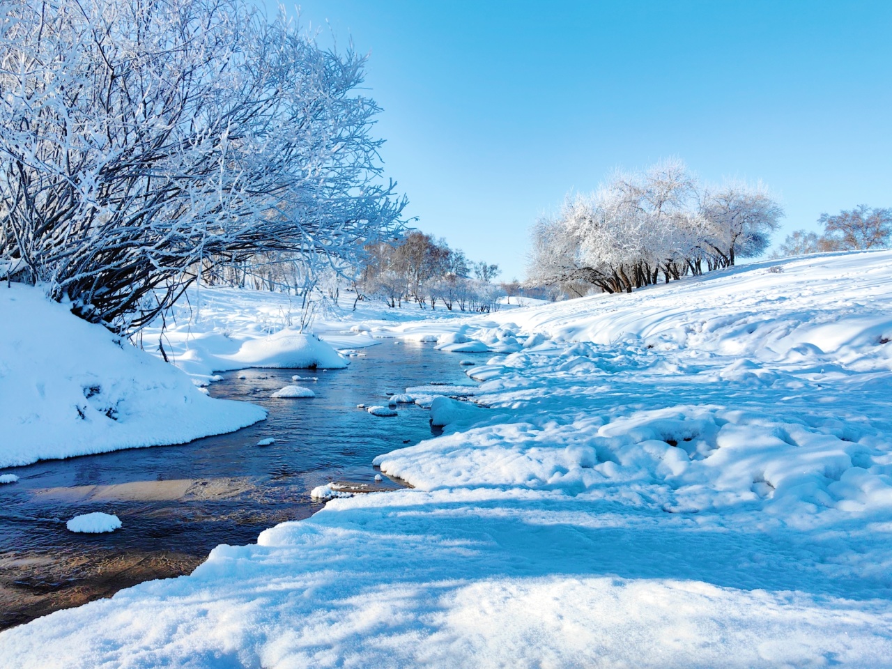 雪馒头散落在白色的荒原,在阳光下如梦如幻,好似将这里装点成了童话世界。