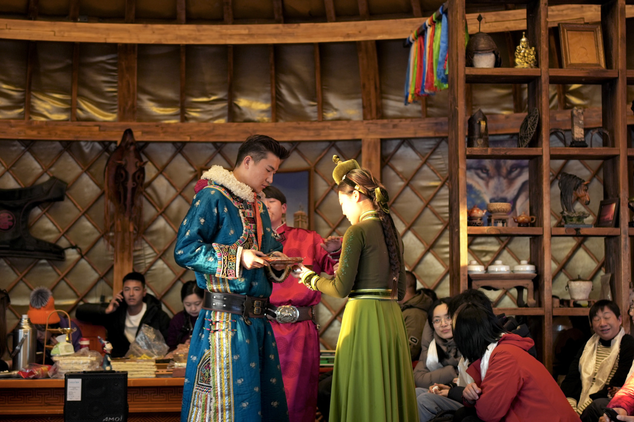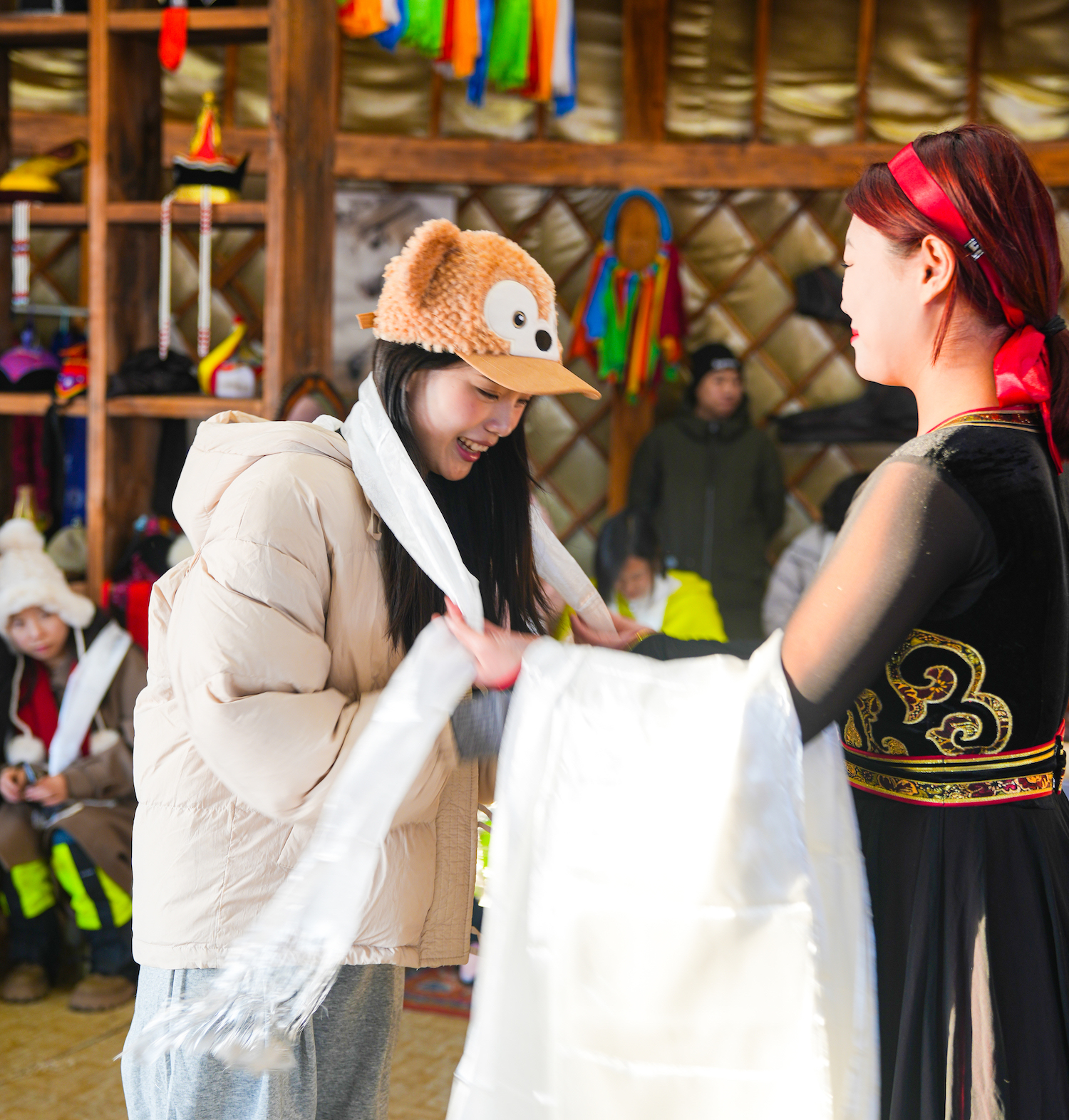 6、蒙古体验:下马酒、献哈达、祭火大典、马拉爬犁、换蒙古服装、高山滑雪圈等