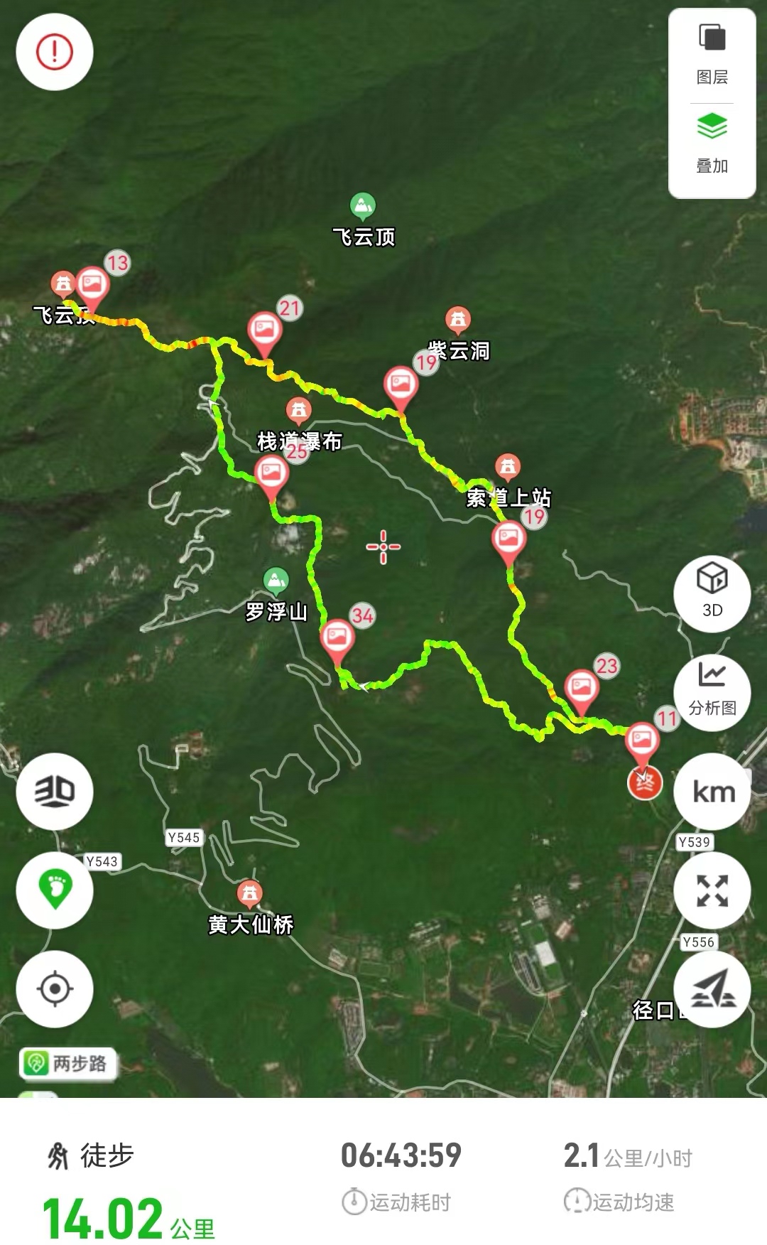 ✔路线长度&累计爬升、耗时