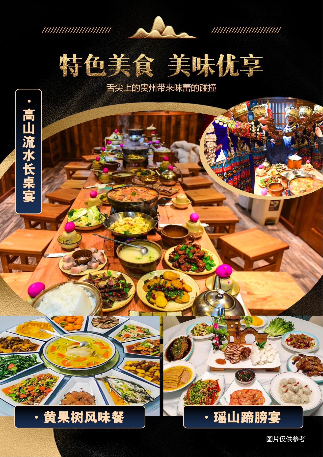 早餐:√ 中餐:高山流水长桌宴 晚餐:× 住宿:安顺