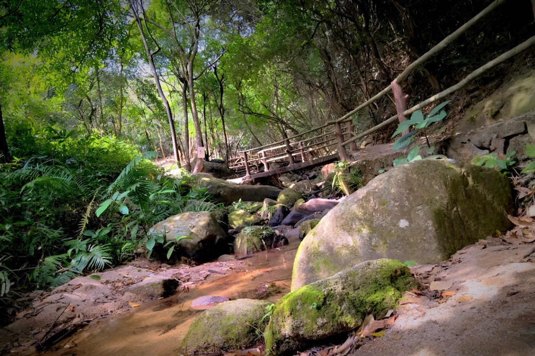 作为此行的起点,芙蓉嶂位于花都,以海拔360米的芙蓉山为主体,连绵数十里。群山逶迤,松林迭翠,飞瀑流泉与湖光山色交相辉映,区中树木覆盖率高,空气清新宜人。
