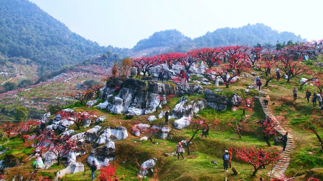 作为“中国鹰嘴蜜桃之乡”,连平全县鹰嘴蜜桃种植面积达8.8万亩。每年二三月间,桃花依山势次第绽放,奇石、古树、花海相映成趣,构成“石上生花”的独特景观。