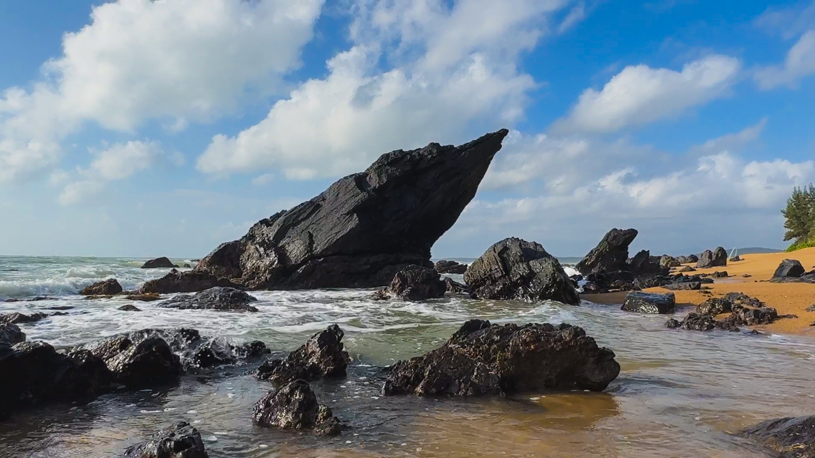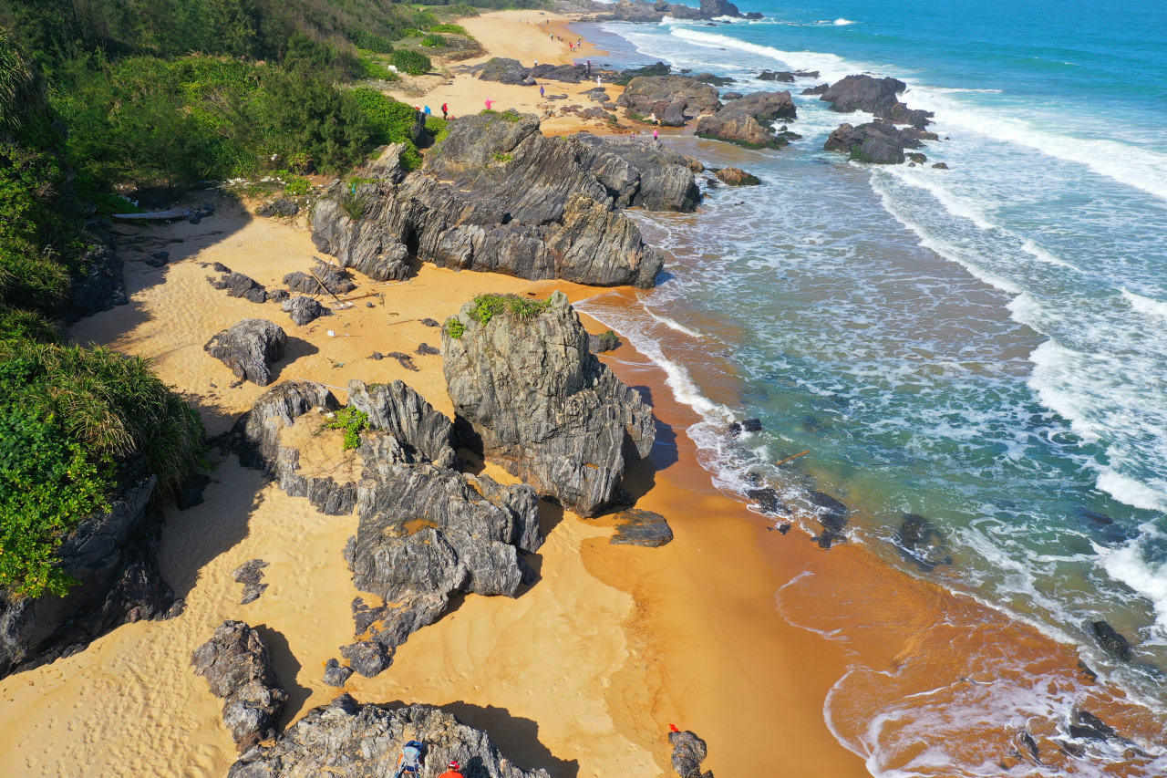 山钦湾位于海南万宁北部与博鳌交界处,有一片极具震撼力的海滩,怪石嶙峋,海天一色。是一处还未开发的原始海湾,鲜有人知,近年一跃成为小红书上万宁网红打卡点。
