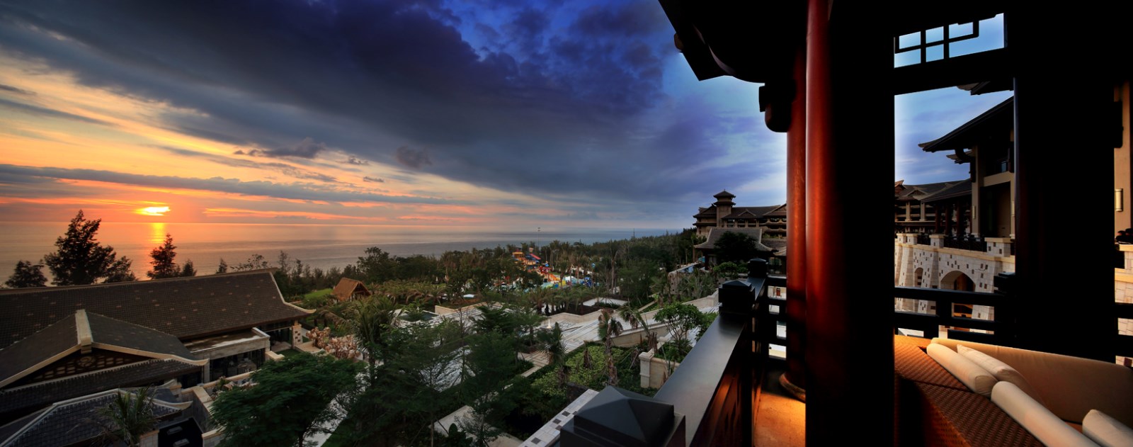 整个酒店让人感觉到浓厚的海南椰林热带风格和宫廷园林的高贵气息。这里的海上日落特别美,傍晚时分,站在酒店的景观台,壮丽的海上日落美不胜收。