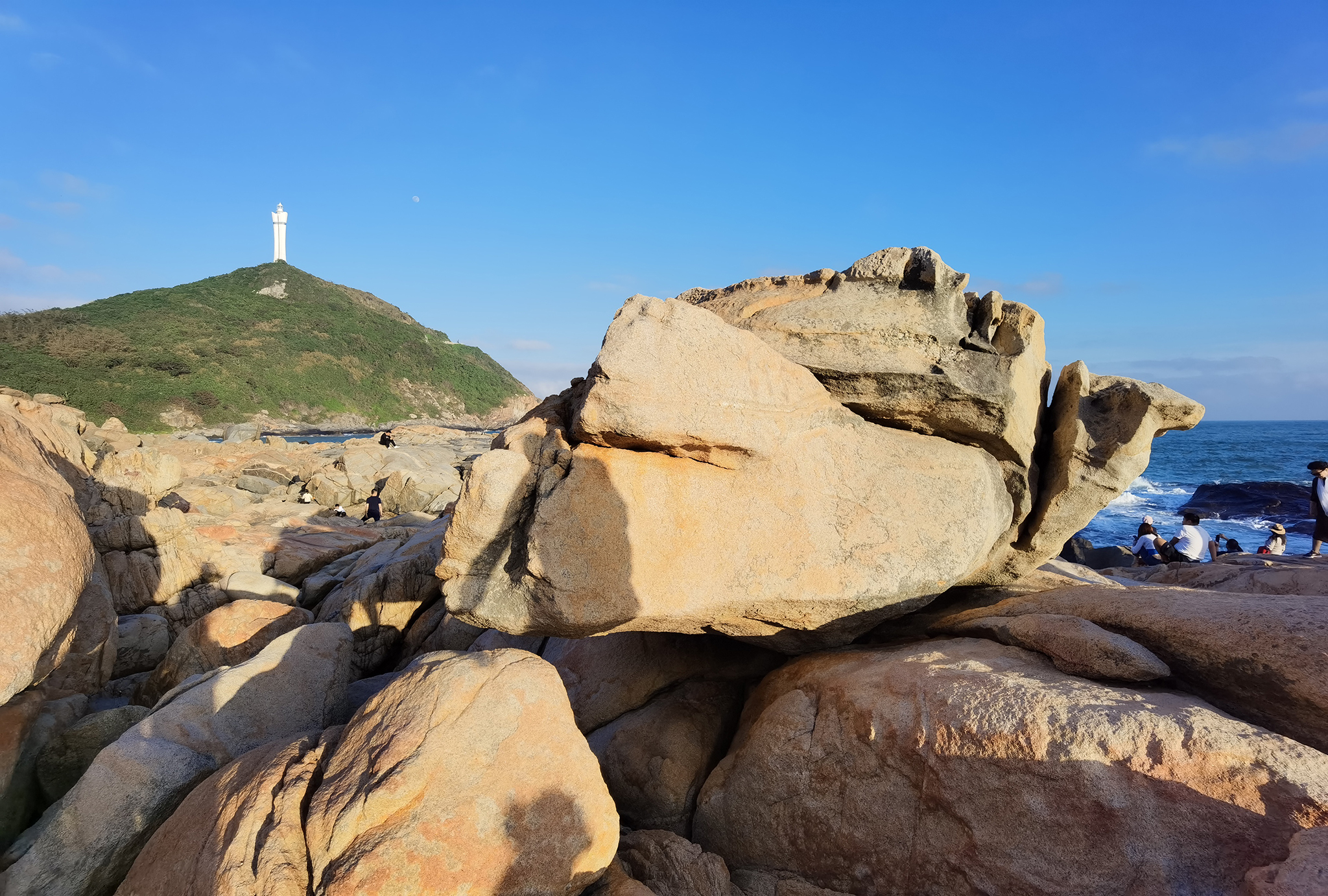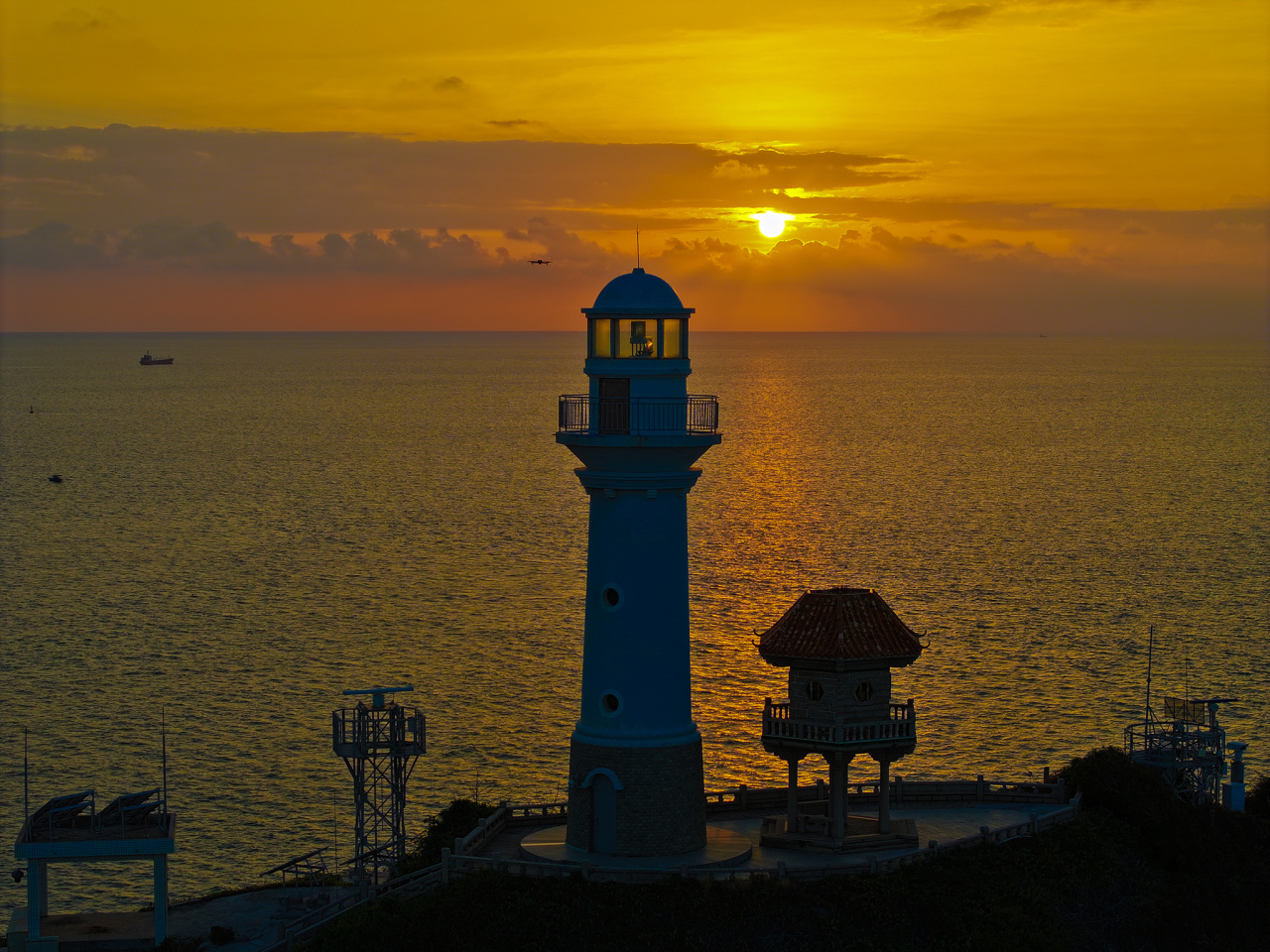 游完天涯海角,我们前往东方市的鱼鳞洲灯塔打卡。鱼鳞洲位于八所港的海滨区域,清朝康熙年间就被列为海南八大风景区之一。鱼鳞洲其实是一座裸露着岩石的丘陵,丘陵最高处矗立着一座灯塔,这是鱼鳞洲的标志,也是东方市的标志。鱼鳞洲灯塔是北部湾重要的航标,至今仍在为夜里航行的船只指引方向。现在,这座灯塔已经成了年轻人最爱打卡的网红之地。